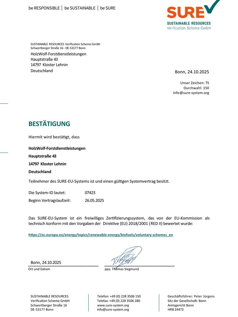 Diese Zertifizierung bestätigt, dass wir unsere Prozesse konsequent an den Anforderungen einer nachhaltigen Lieferkette ausrichten – von der Herkunft bis zum Endprodukt.